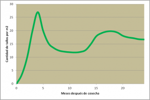 Tal como lo advertíamos cuando planteábamos la posibilidad de optar por no cosechar según los casos, nuevos tallos podrán originarse en número variable de acuerdo a las condiciones del cañaveral. El incremento porcentual de tallos estará asociado a la población inicial y a los aportes de lluvia y de nutrientes del suelo. De tal modo, la conformación del cañaveral de 24 meses será de tallos de 1 y 2 años, en proporciones que dependen del estado del cañaveral, de las características del suelo y de las precipitaciones durante el período de crecimiento.