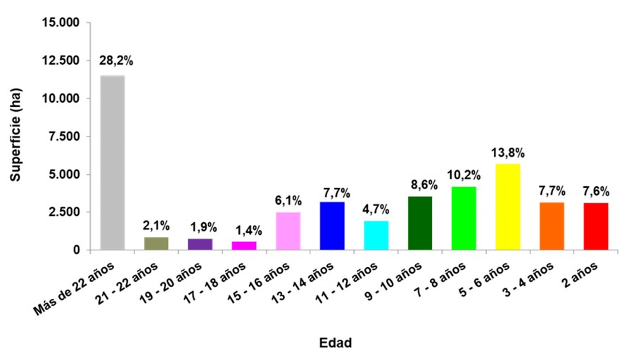 A partir de una superficie neta total de 42.650 hectáreas, hemos realizado una discriminación etaria fundamental para entender el potencial productivo y las necesidades de renovación del sector.