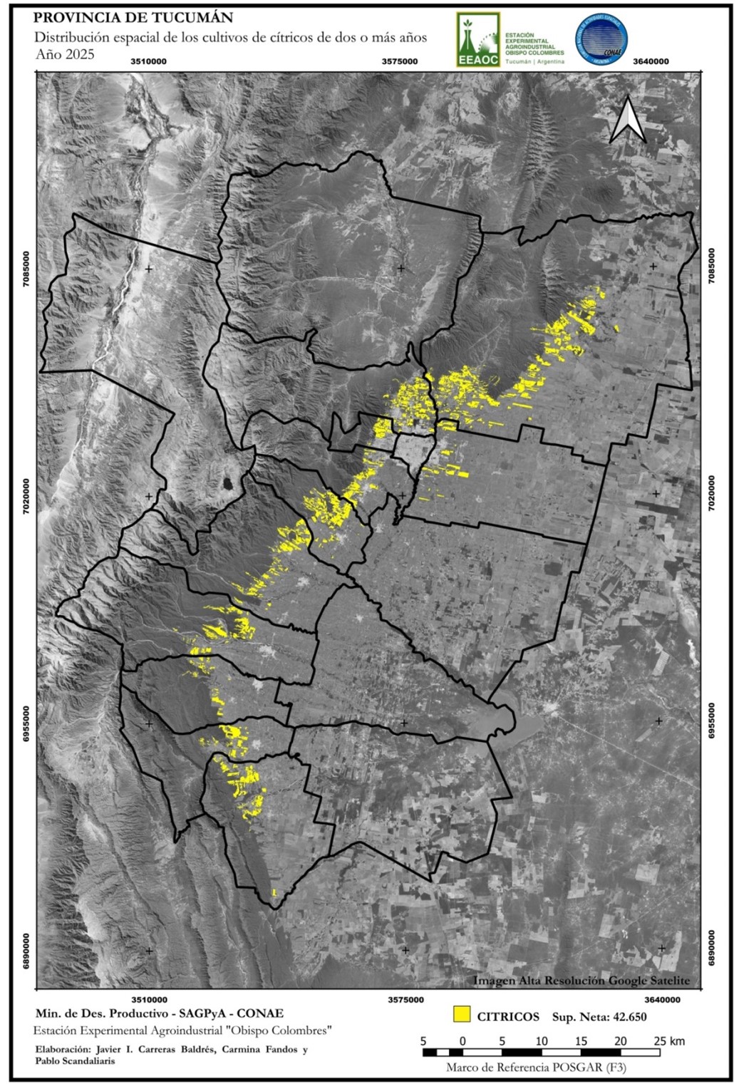 Para alcanzar esta precisión, la EEAOC utilizó imágenes de los satélites Sentinel 2 (A, B y C) e imágenes de alta resolución provistas en el programa Google Earth desde el mes de julio hasta el mes de diciembre de 2025, aplicando metodologías de clasificación multiespectral y análisis con Sistemas de Información Geográfica (S.I.G.).